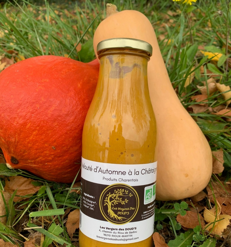 Les Vergers des Doud’s est une exploitation agricole certifiée bio située à Rioux-Martin (Charente), spécialisée dans la culture de vergers (notamment châtaigniers et noyers) sur environ 25 ha. Elle propose des produits bruts (noix, châtaignes) et transformés (purée de châtaignes, crème de marrons, farine de châtaignes, huile de noix). Elle commercialise en ligne et en vente directe et prévoit d’étendre sa gamme avec d’autres fruits (pommes, kiwis, prunes) dans les années à venir.